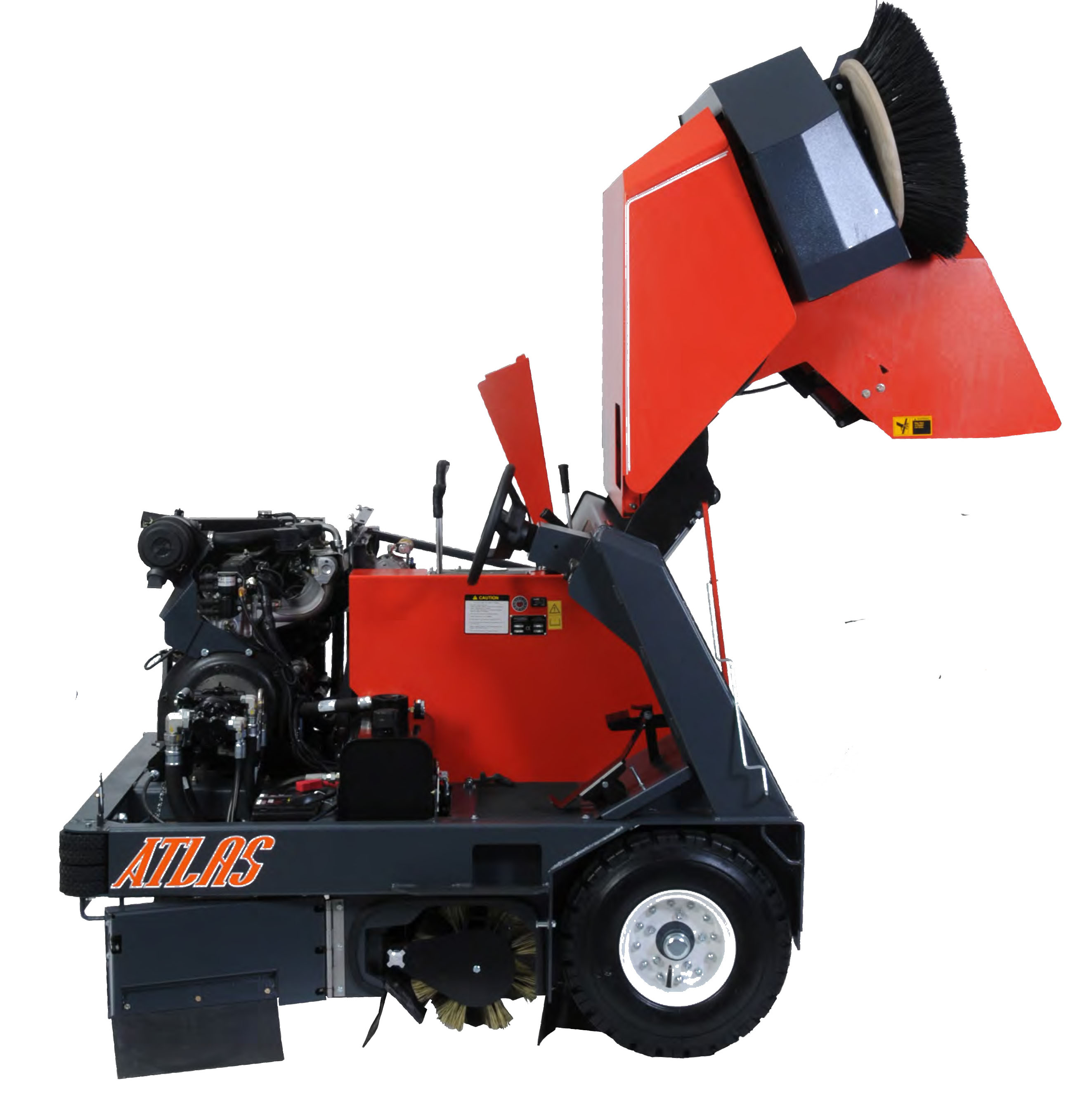 总体概述 ATLAS是一款大型驾驶式燃油扫地机,每小时清洁效率是17000平方每小时。全车采用钢架机构,垃圾箱和车身盖板都采用钢材质,使用寿命非常长。全车采用开发放式设计,日常维护非常方便。垃圾箱高位起升,倾倒垃圾也非常方便。全车采用最新的国际知名品牌久保田发动机,全车液压是驱动。