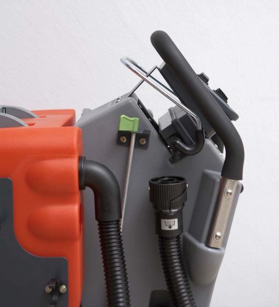 哈高独有的Hako-Aqua-Control System ACS水、刷行联系统。当机器暂停工时,刷子和供水自动停止。刷子备有裙边,可节省50%的水及清洁剂,德国TUV机构实验证明,以其整个服役期计算,该项节约相当购买整台机器费用。