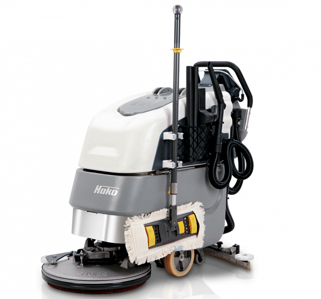 Hakomatic B 45洗地机,创新技术、令人信服,专为非织物地板的日常基本清洁而研发。经济型PowerFlow,刷子支持向前行驶或方便型(向前/后行驶),可随时变向行驶:Hakomatic B 45系列型号根据客户的需求提供特制的方案,高效、经济。根据您的个人需求,在清扫垃圾时,您可选择工作宽度为43、51或65厘米的盘刷装置,或选择工作宽度50厘米的滚刷装置。