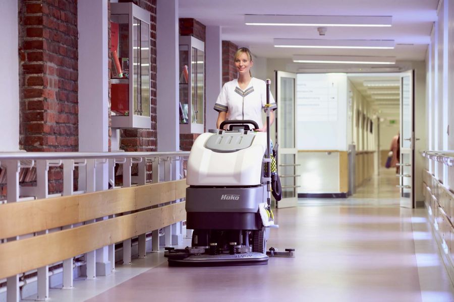 Hakomatic B 90 和 B 120洗地机清洁高效,彻底干净。 配备滚刷或盘刷装置,工作宽度从60-85厘米,作业时间长达4小时,多种可选配置满足客户的不同需求。 最佳视角、高度灵活、操作简便(CL机型配备绿色Hakomatic按钮),且污水吸除效果显著,简单可靠。 另外,Hakomatic B 90的清水箱和污水箱采用Hako-AntiBac抗菌特性,最大限度减低细菌和真菌的滋生机